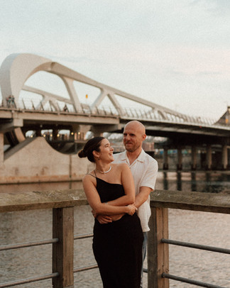 These two were completely at ease, their connection shining through every glance and smile. From playful laughter beside historic buildings to quiet, intimate moments watching the golden sky reflect on the water, their session perfectly captured the joy and excitement of this new chapter together.