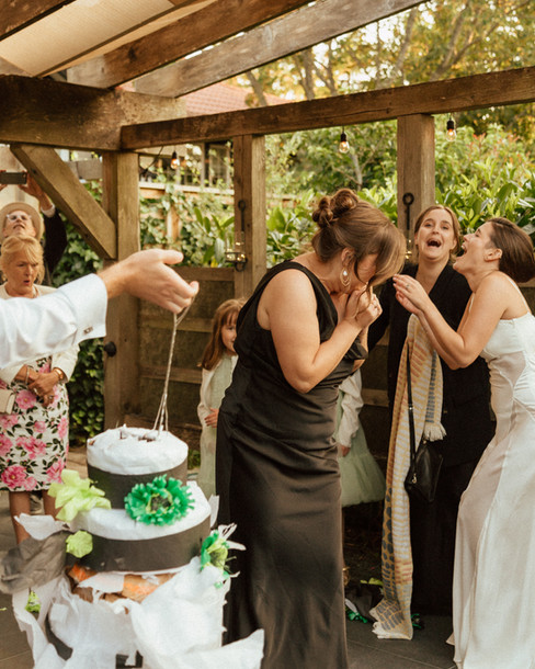 The band played while Fiona and Kevin shared their first dance, followed by one of the most fun dessert moments I have ever seen. Instead of a traditional wedding cake, they opted for a piñata cake. Almost everyone lined up to take a swing, and honestly, I think the adults enjoyed it even more than the kids. Candy exploded everywhere! I am pretty sure I got a toothache just from photographing all the sweets.