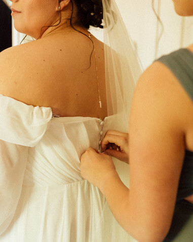 Once everything was finished, Katerina quietly snuck away to the bedroom so her mom and sister could help her into her beautiful wedding dress. After she was fully dressed, we set up a father-daughter first look with her dad, surrounded by family. It was one of those moments where everyone in the room was tearing up. Such a sweet and emotional way to start the day.